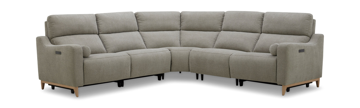 Introducing the Janell 5 Piece Modular Sectional by HOM Furniture, a perfect blend of comfort and functionality for your living space. This luxurious sectional features 3 power reclining seats with power adjustable headrests, ensuring optimal relaxation and support. The included 2 bolster pillows add a touch of sophistication to the ensemble. Crafted with heavy-duty mechanisms, this sectional is built to last and withstand daily use. The grey fabric upholstery exudes a casual yet elegant vibe, making it suitable for various decor styles, from transitional to contemporary. Custom orders are available for those looking to personalize their furniture to fit their unique preferences. Simple assembly required.