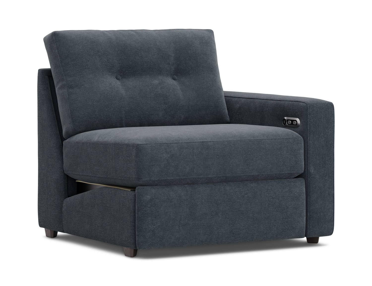 Introducing the ModularOne Right Arm Power Recliner by HOM Furniture, the epitome of comfort and customization. Crafted with an engineered hardwood frame and steel spring suspension, this recliner ensures durability and support for years to come. The high resiliency foam cushion and fully padded frame offer unparalleled comfort, making it the perfect spot to unwind after a long day. With custom orders available, you have the flexibility to choose the fabric material that best suits your style and preference. The casual design and modular build-your-own feature allow you to create a seating arrangement that perfectly fits your space.