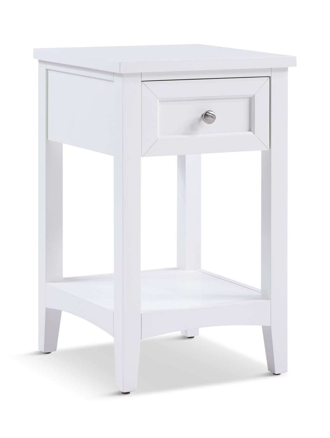 Introducing the Chesapeake 1 Drawer Nightstand, a stunning addition to your bedroom. Crafted with precision and attention to detail, this nightstand boasts French drawer joinery for durability and sophistication. Experience smooth and quiet operation with the side soft closing drawer glides, adding a touch of modern convenience to this classic piece.