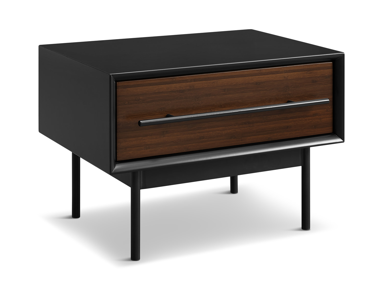 Adding the Jones Nightstand to your bedroom will not only make your room feel stylish, but it will also make you feel at peace knowing this is an eco-friendly choice for your home. This nightstand is created with a metal base and legs with a solid bamboo frame and drawer. The stunning coloration of the bamboo is created using a high pressure baking process instead of a surface stain. The long metal handle accentuates the linear quality of this piece. The drawer also comes with soft close drawer glides as well as a fully solid bamboo drawer box. The entire nightstand is finished all the way around. Experience the difference of bamboo which is an eco-friendly, renewable resources that is harvested from fully sustainable and rapid growing forests.