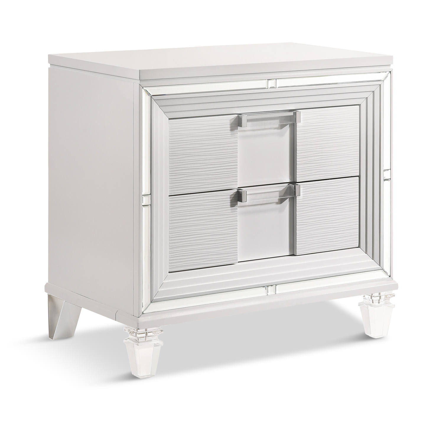 Introducing the Sparkle Nightstand, the epitome of luxury and sophistication for your bedroom. Crafted with sleek glass trim and adorned with tapered acrylic feet, this nightstand exudes glamour and elegance. The modern design is accentuated by the acrylic hardware, adding a touch of contemporary flair to your space. With a convenient USB outlet, this nightstand seamlessly combines style with functionality, allowing you to charge your devices with ease. Made of Asian hardwoods, this piece is not only striking in appearance but also durable and long-lasting.
