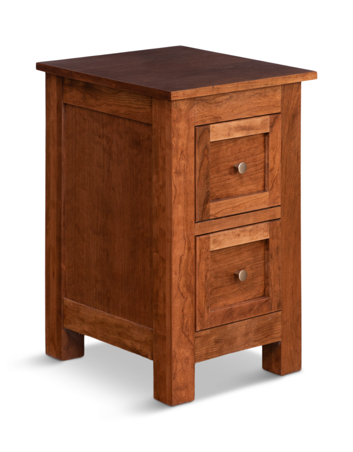 The Taylor J Nightstand adds simple serene, contemporary sophistication to your home. Drawer construction features English dovetail fronts and backs, for both stability and durability. The two drawers provide extra storage for the bedside. The Taylor J Nightstand is finished with a 10-step catalyzed lacquer finish, which is resistant to heat, water, UV light, and scratching. A variety of other wood species and finishes are also available by special order. Crafted of solid cherry.