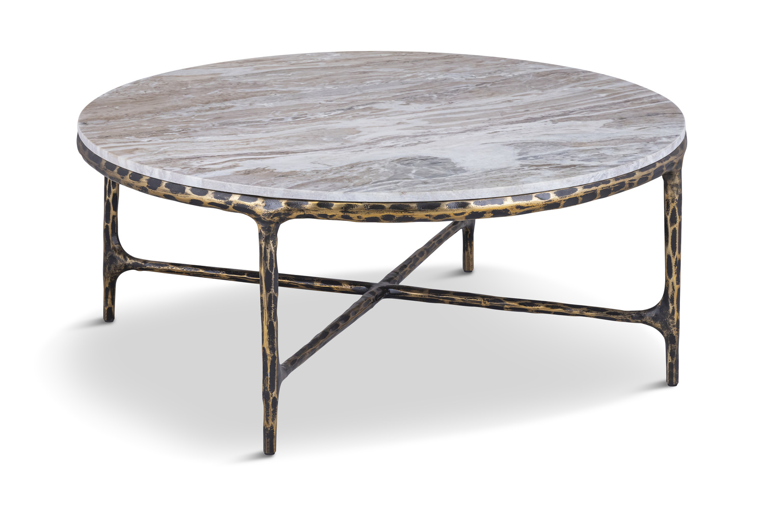 Introducing the exquisite Beverly Round Coffee Table by HOM Furniture, a striking centerpiece that effortlessly combines luxury with modern elegance. Crafted with a sturdy cast aluminum base in a chic distressed finish, this coffee table is as durable as it is stylish. The showstopper is the exquisite marble top, each piece showcasing unique natural color variations and distinctive veining. The Beverly Coffee Table exudes a timeless charm that will elevate any living space. This piece is sure to make a statement.