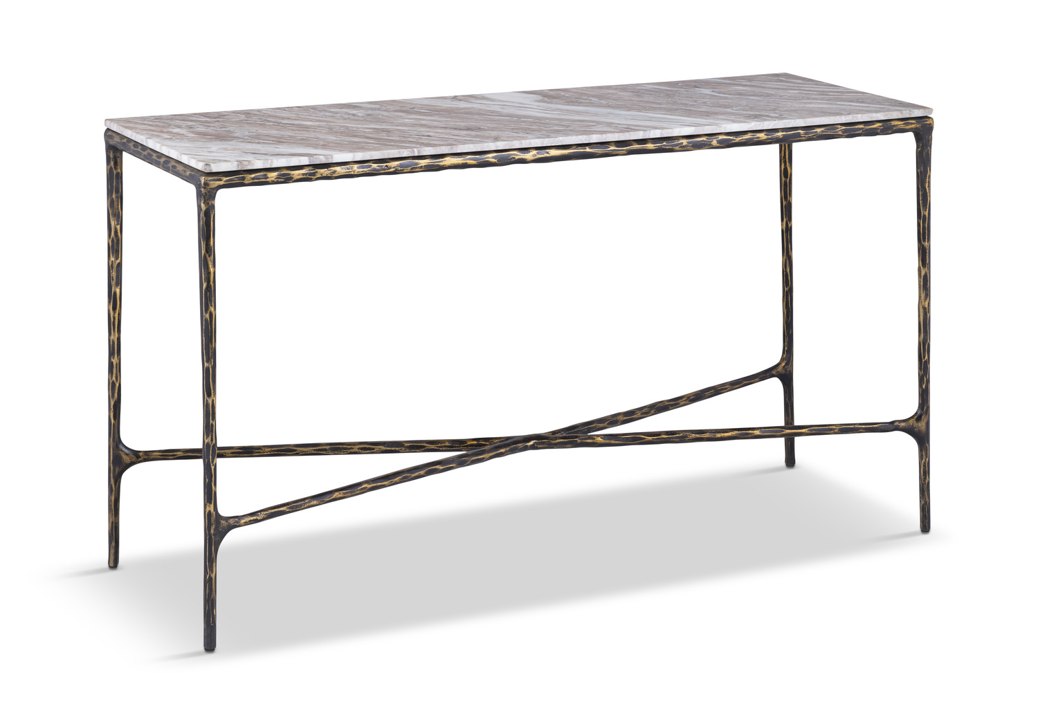 Upgrade your living space with the Beverly Sofa Table from HOM Furniture. Crafted with a sleek cast aluminum base and a unique marble top that varies in natural color and veining, each piece exudes modern style and sophistication. Available in two stunning colors, this table has a rich hue top with a distressed base, and is the perfect accent piece for any room. Elevate your home decor with the adventurous charm of the Beverly Sofa Table, where style meets functionality in a truly captivating way.