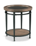 Presenting the exquisite Callan Round End Table, a fusion of craftsmanship and elegance for the Fine Furniture Gallery collection. Crafted with a blend of hardwood and veneers, this end table showcases a sophisticated design featuring a hammered metal insert on the top surface and burnished metal legs for a touch of industrial charm. Boasting both style and functionality, it comes equipped with a convenient drawer and a fixed shelf to store your essentials. Elevate your living space with the timeless appeal of the Callan Round End Table.