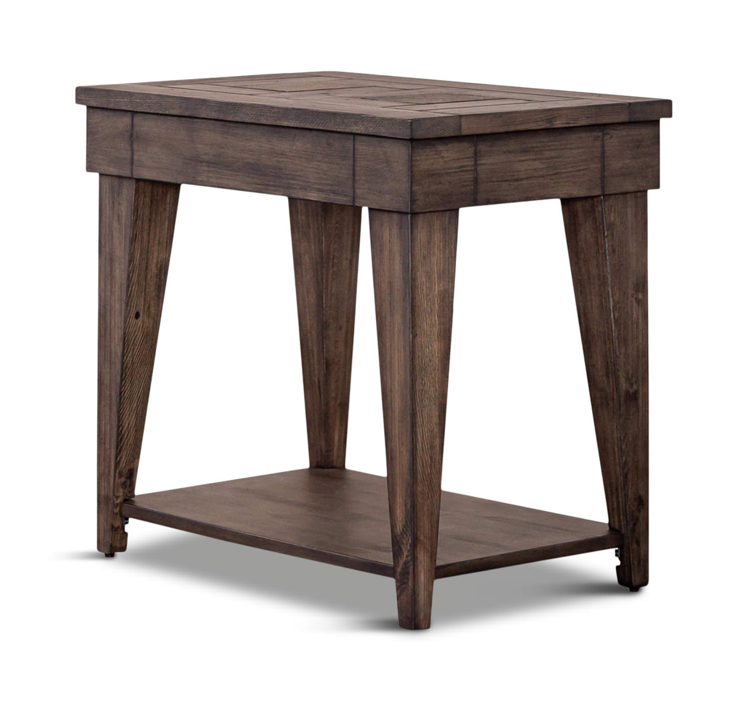 Bring a touch of modern rustic to your living room with the Concord Chairside Table. Made of pine wood and pine veneers with a weathered stone finish. The top features a basket weave pattern with natural stone inserts in a variety of color tones that will vary from piece to piece. The mix of pine and slate creates an organic warmth that will fit any room décor. Showcasing a nod to rugged nature this table showcases a simple design with earthy colors.