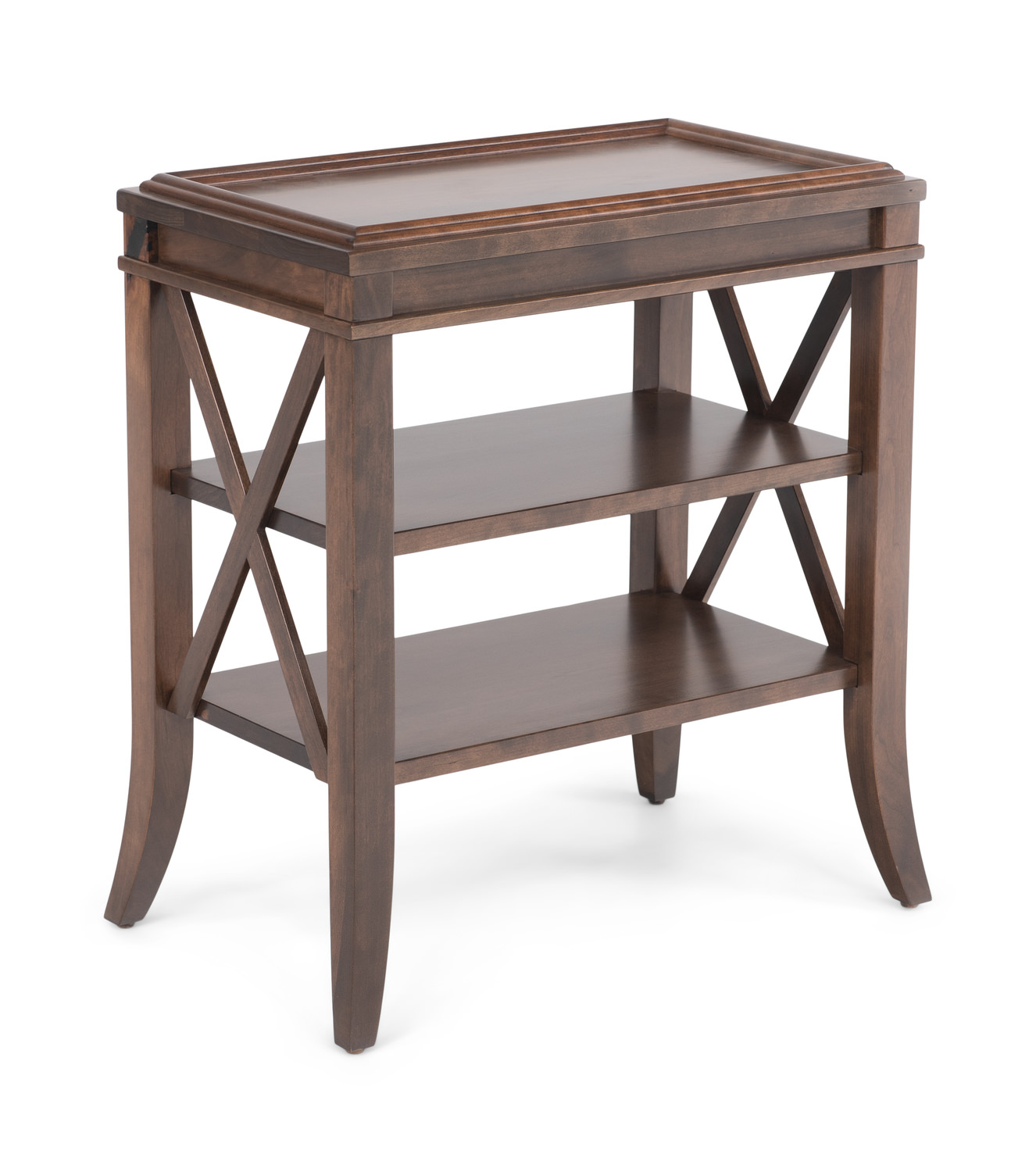 This Hartford Chairside Table is a stunning addition to any room. Crafted from solid cherry wood, it features pegged supports with no screws, as well as tongue & groove construction for added durability. To ensure its lasting beauty, it has been finished with a catalyzed varnish topcoat. Custom orders are welcome, giving it the flexibility to fit in with any decor. With superior craftsmanship and a timeless design, this chairside table is the ultimate in functional style.