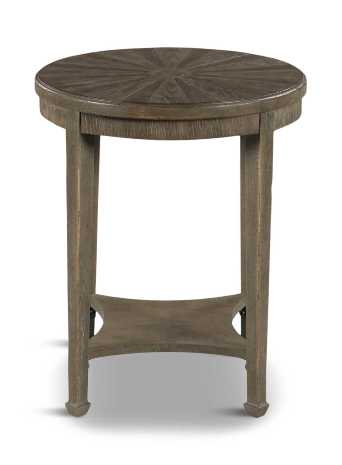 Add beauty to your space with the Mae Round End Table. Featuring a stunning starburst pattern on the tabletop that shows the true craftsmanship and details of this table. Made of white oak veneers and rubberwood solids. The distinctive high-low veneer creates texture in the trendy Shadow finish. The Mae Round End Table is a show stopper!