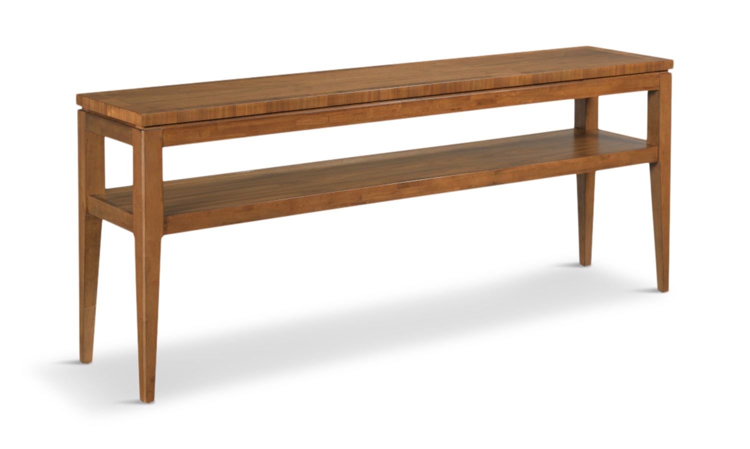 Immerse yourself in luxury with the exquisite Martha Sofa Table from HOM Furniture. Crafted with the finest walnut veneers and select solids, this table exudes sophistication and elegance. The rich auburn finish adds a touch of warmth and charm to any living space. The Martha Sofa Table is a perfect blend of style and practicality, featuring a stationary shelf for added functionality. Elevate your home decor with this stunning piece that brings timeless beauty and luxury to your living room.