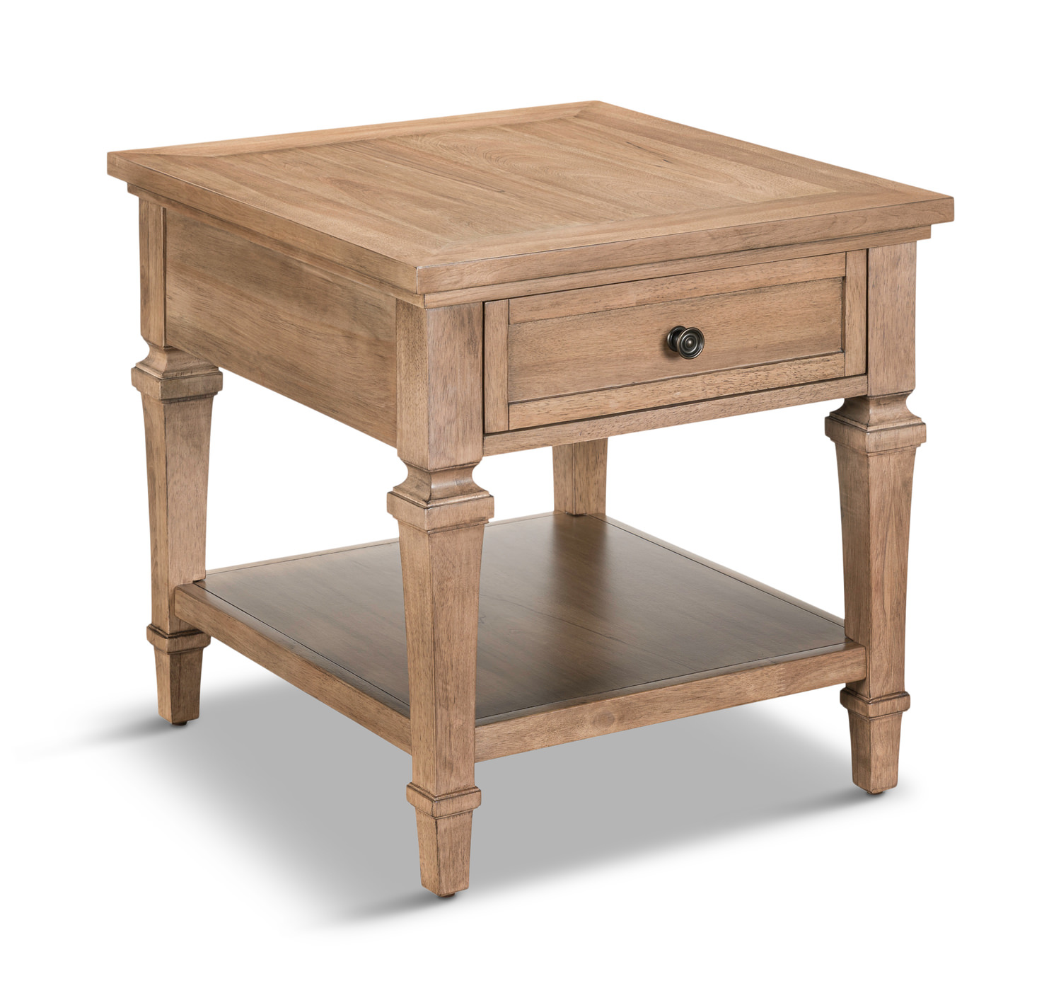 Upgrade your living space with the exquisite craftsmanship of the Milo End Table! This charming end table boasts a perfect blend of French and English dovetail construction, ensuring durability and a touch of elegance. The drawer with metal side drawer guides offers convenient storage for your essentials, while the open bottom shelf provides additional display space for your favorite decor items. Crafted from rubberwood solids with rustic birch veneers in a rich camel beige color, this end table exudes a traditional style that will beautifully complement any home decor. The beautiful finish adds a warm and inviting touch to your space, making it the perfect addition to your living room or bedroom.