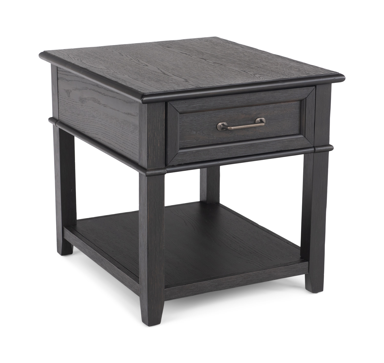 Welcome the Noelle End Table to your home! This family room essential is crafted with rubberwood solids and split heart white oak veneers, finished in a peppercorn hue. The table features an open bottom shelf and one drawer for storage making it a great addition to any living space. With the Noelle End Table, you can bring timeless style and functionality into your home.