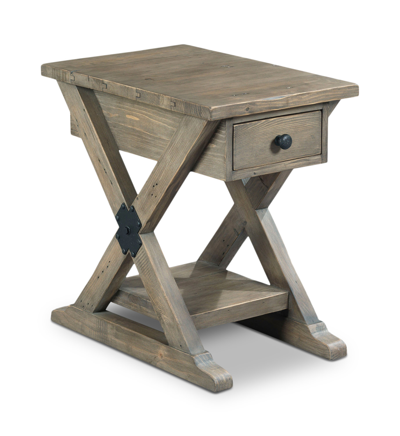The Reclamation Place Chairside Table gives new life to this certified naturally reclaimed wood. Solid lumber from a mixture of wood species, hammered metal hardware, details of oxidized stains, old nail and saw marks all reveal previous use and tell an intriguing life story that can be brought into your living room to create a truly unique space. This collection is part of our Green Certified program with the FSC Reforestation Program that gives back to our planet by protecting forests for future generations.