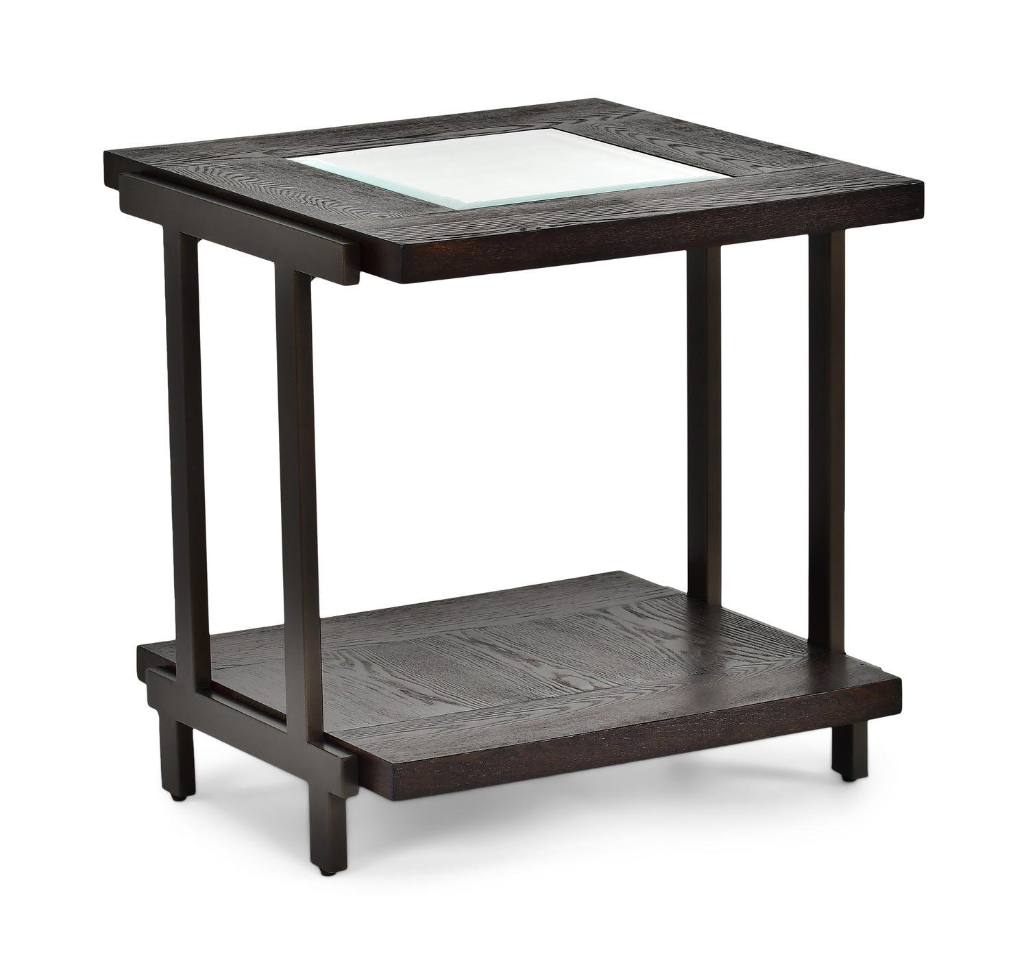 Enhance your living space with the Zander End Table from HOM Furniture. Crafted with high-quality ash veneers and featuring a sleek tempered glass insert top, this end table boasts a rich dark finish that complements its warm brown color. The transitional style of the Zander End Table effortlessly blends with any decor, making it a versatile addition to your home. Perfect for displaying your favorite decor or resting your morning coffee, this end table is both functional and stylish. Upgrade your space with the Zander End Table from HOM Furniture.