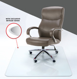 Tired of plastic floor mats that turn yellow and fall apart over time? The invisimat is made of tempered glass, remains crystal clear, and can withstand up to 1500 pounds! The beveled edge makes it easy to roll your chair on and off the mat when needed. Stocked in 3 sizes: small 36 x 46, medium 45 x 53 and large 48 x 60 for your executive configuration.
