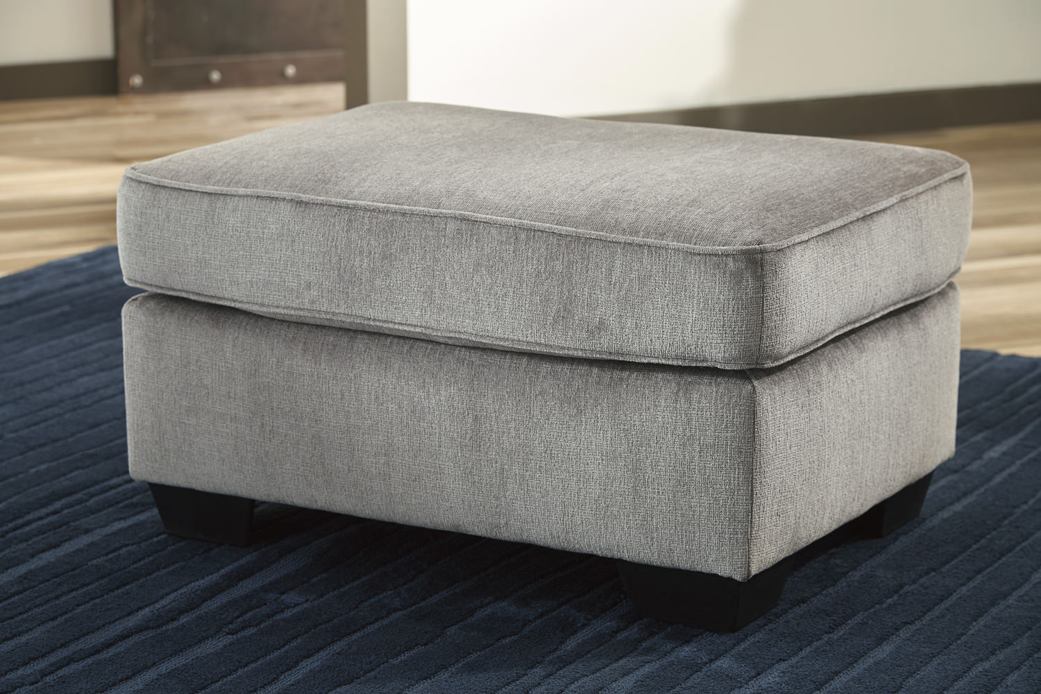 The eye catching Eltman Ottoman bring contemporary style to your house. The plush chenille fabric is showcased in the slate gray color. The cushion is made of high resiliency foam wrapped in a thick poly fiber for extra comfort and support. Cozy the ottoman up next to the rest of this matching set or place a tray on it to serve some snacks on your family night.