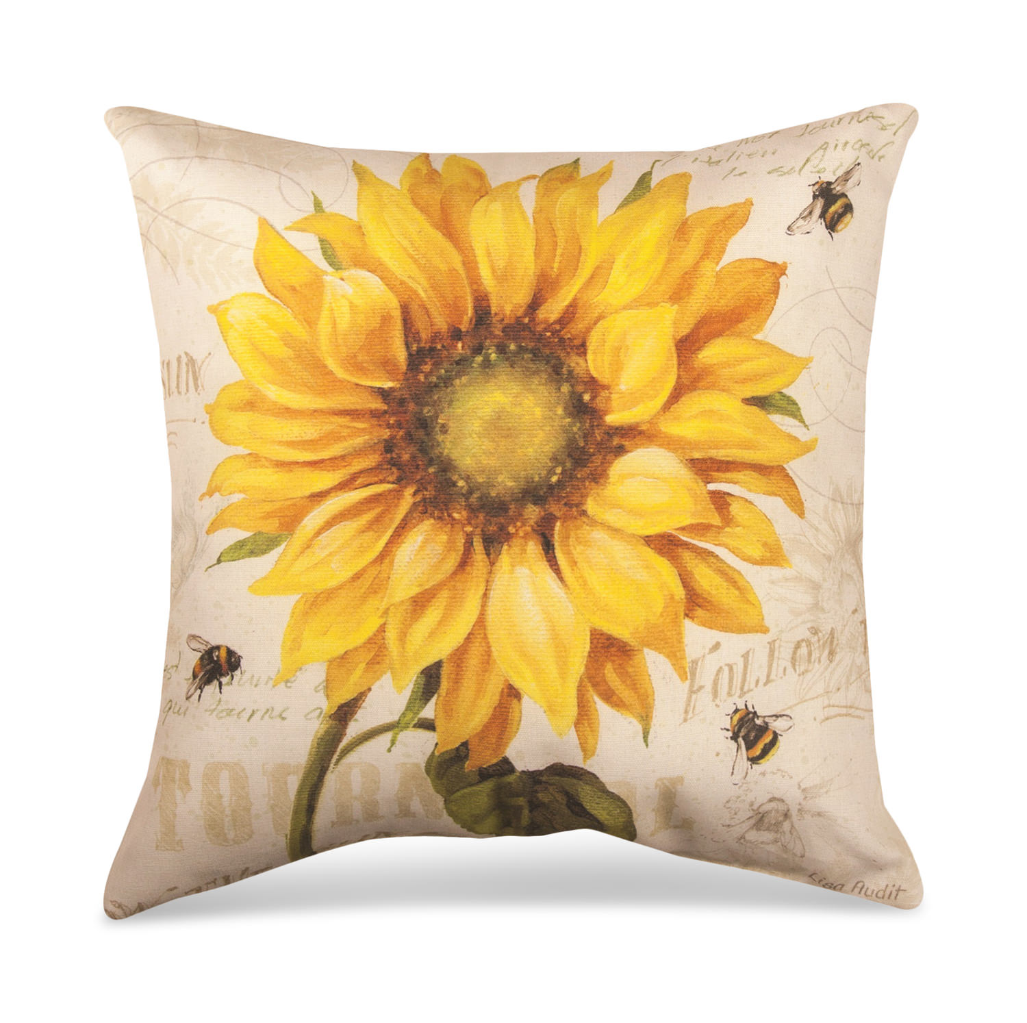 This printed on 18" fabric pillow has a reproduction print titled "Under the Sun" by Lisa Audit. This 18" pillow will add a pop of color to your porch, deck, sun room or patio furniture.