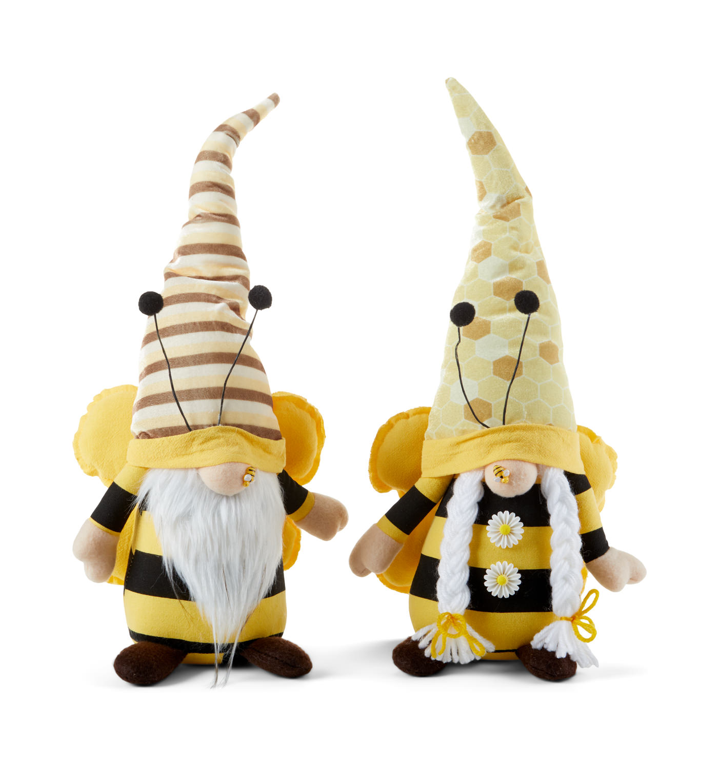 These cute bee-themed gnomes are plush with beehive hats, the flower buttons on the body, antenna's and stripped black and yellow outfits are all extremely realistic, making the gnome look very cute. They are suitable for spring and summer home decoration, you can put them next to any decoration with a spring and summer theme, such as vases, plants, sunflowers, etc. Each sold separately.