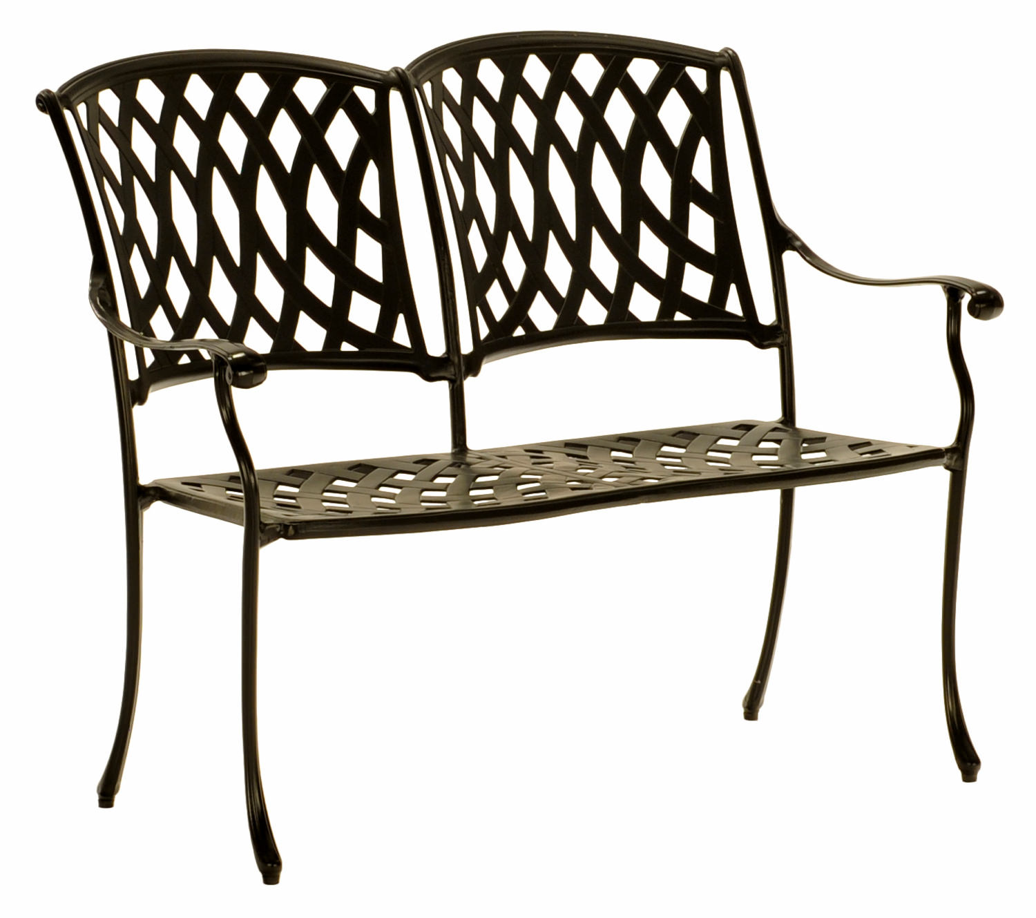 The Bellmore Bench is an outdoor cast aluminum bench, crafted in a classic garden lattice pattern with a comfortable arm, curved back, and flared leg design. Constructed from cast aluminum with a baked-on black powder coat finish. Sit back, relax and enjoy the great outdoors. Highly recommend a protective cover from the great outdoor weather in the off-season. Make this bench more comfortable with a cushion, and choose from many colors, sold separately.