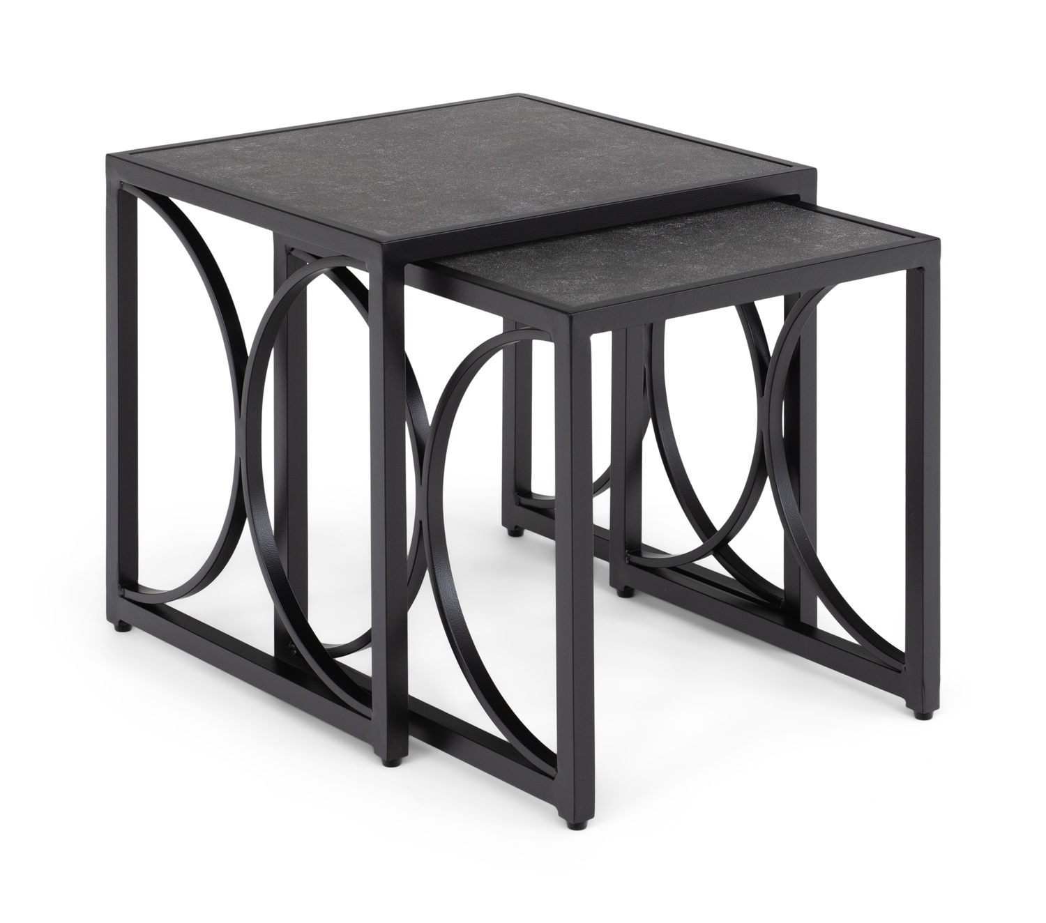 The Cece Nested Side Table from HOM Furniture's Furniture Creations Direct Brand is perfect for adding a touch of sophistication to your outdoor space. Crafted with a sleek aluminum frame and a classy matte black finish, this set of glass top nested side tables exudes elegance and style. The transitional design seamlessly blends with any decor, making it a versatile addition to your patio furniture collection. Whether you're enjoying a cup of coffee or hosting a gathering, these tables provide both functionality and aesthetic appeal. Upgrade your outdoor living area with the Cece Nested Side Table and elevate your outdoor lounging experience!