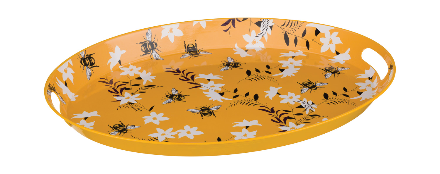 This vibrant yellow, black, and white large painted tray is superb for entertaining with food, drinks, smores etc. out on your deck, patio area, or porch.