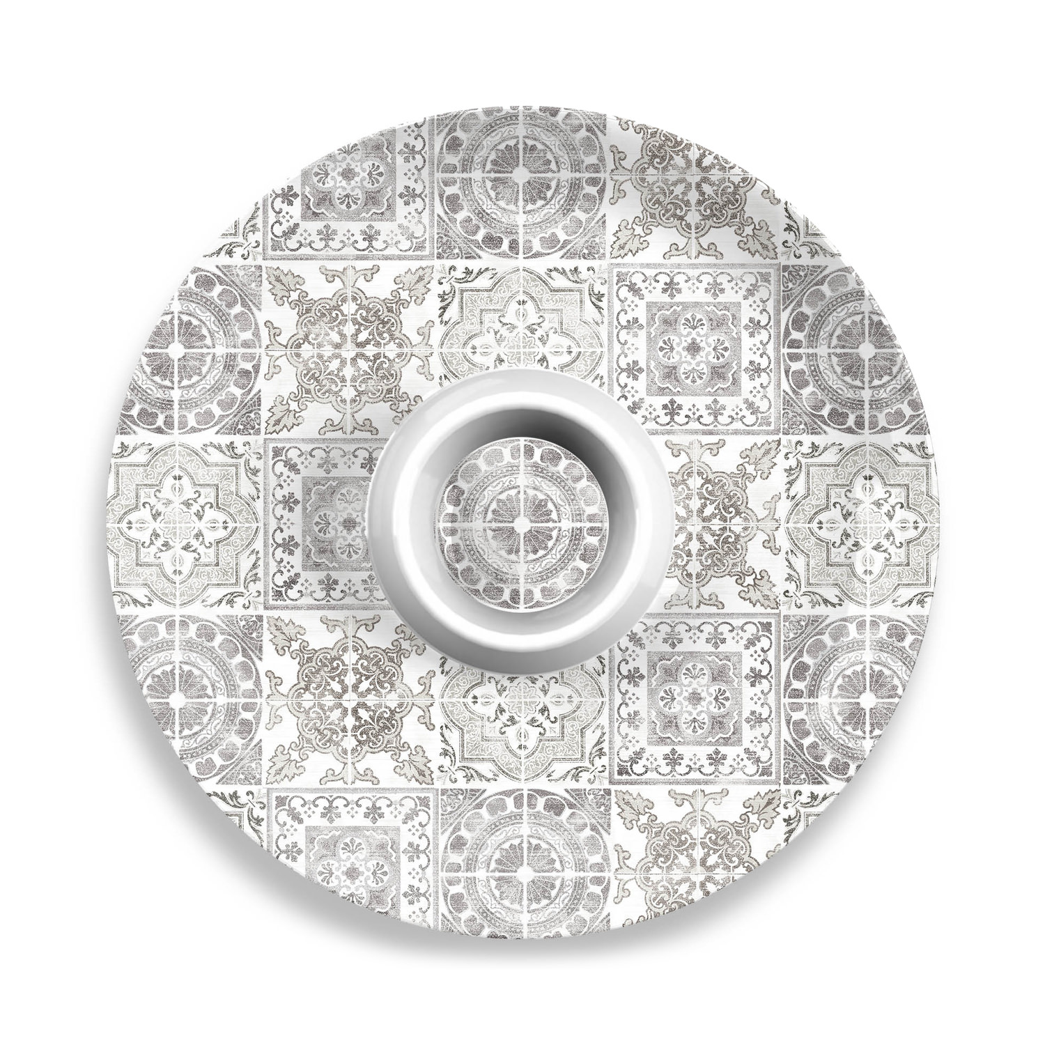 Melamine being very durable for trips and gatherings the cool grey Portico Chip And Dip Tray makes outdoor entertaining easy. Take to your next family reunion, block party, beach or cabin.