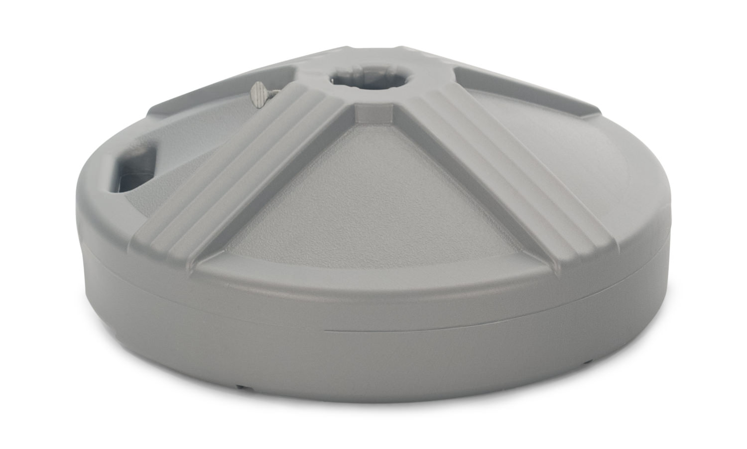 This 50 lb Pre-Filled Umbrella Base has an easy-grip handle and the UV stabilized polymer resists cracking and fading. This robust umbrella base will not rust, dent or leak.