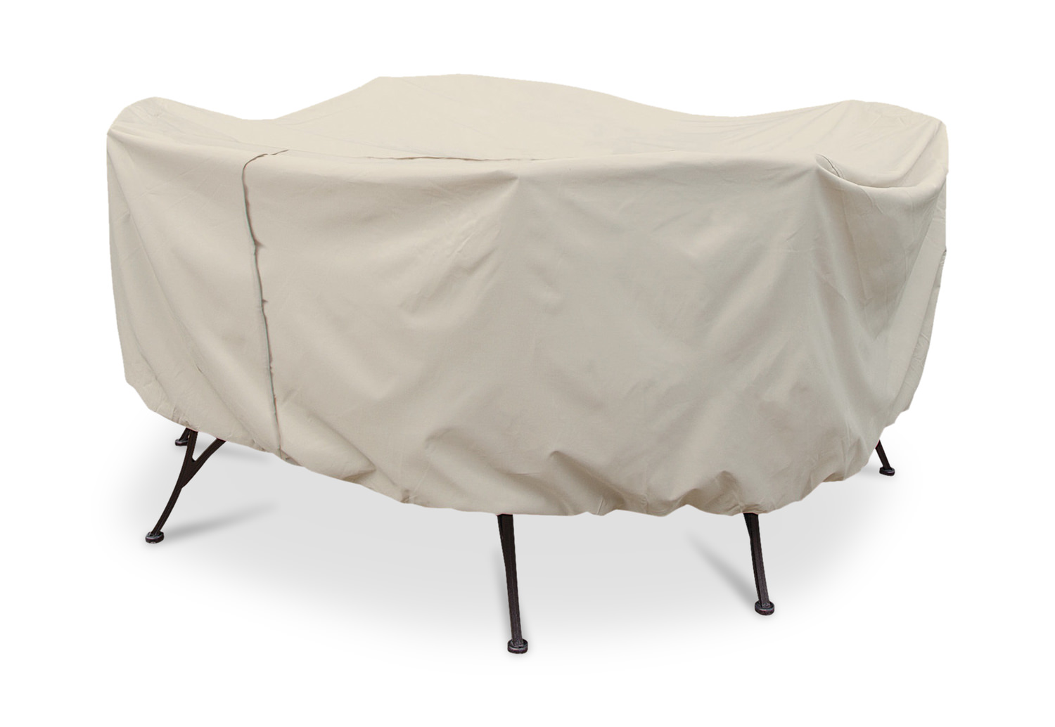 Do you want your outdoor furnishings to look like new and last longer? Then, protect your investment with the Protective Cover - 48" Round Table And Chairs from treasure Garden, which are crafted from exclusive RhinoWeave® fabric. This 100% coated polyester cloth fabric, designed with durability in mind, are both breathable and water resistant. They hold up better than vinyl furniture covers that often crack or peel from exposure to the elements. Offered in a champagne color fabric, these protective covers keep outdoor furniture cleaner, drier and reduce fading. The protective covers are also easy to use and they are machine washable.