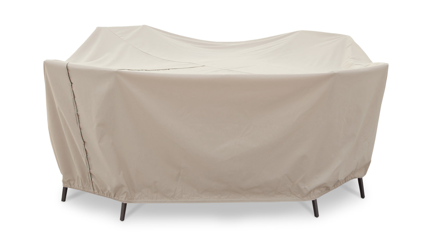 Created from a 100% coated polyester cloth fabric call Rhinoweave™ this durable protective cover is good investment to protect patio furniture from the harsh outdoor elements. Total cover top diameter is 108" with 36" high drop. Includes 8 ties, an elastic band around the bottom and a spring cinch lock holds this cover on the set during normal conditions. This style includes a velcro closure that makes putting the cover on a set and storage easier. The velcro closure also works well around an umbrella bottom pole.