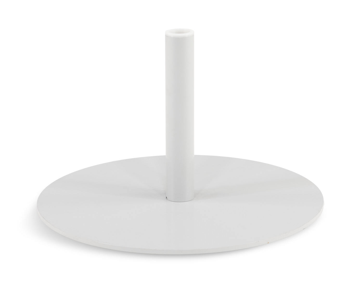 This 62lb Umbrella Base can be used with any standard market umbrella. Designed flat 24" round steeel plate to go under table legs, finished in a dove power coat. You can custom order a 18" (40lbs) base if needed.