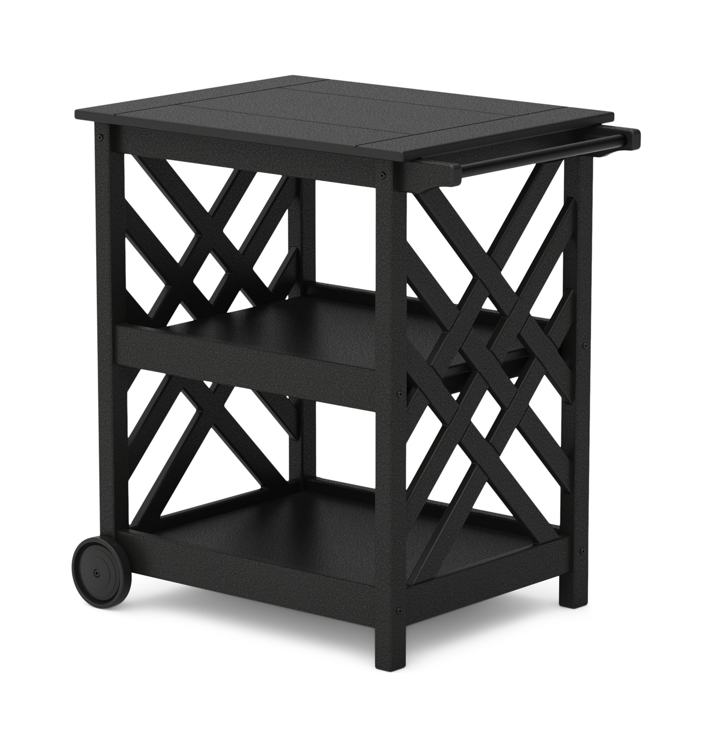Introducing the Wovendale Bar Cart by HOM Furniture! Elevate your outdoor entertaining experience with this stylish and functional patio accessory. Crafted from high-density polyethylene material, this bar cart exudes transitional charm. Designed with durability in mind, the Wovendale Bar Cart features a sturdy frame made of HDPE polywood and durable rolling wheels for easy mobility. With custom order options available, you can personalize this cart to suit your unique style and needs. Perfect for hosting gatherings or simply enjoying a relaxing day in your outdoor space, this bar cart comes with extra shelves for added storage and convenience. Assembly required.