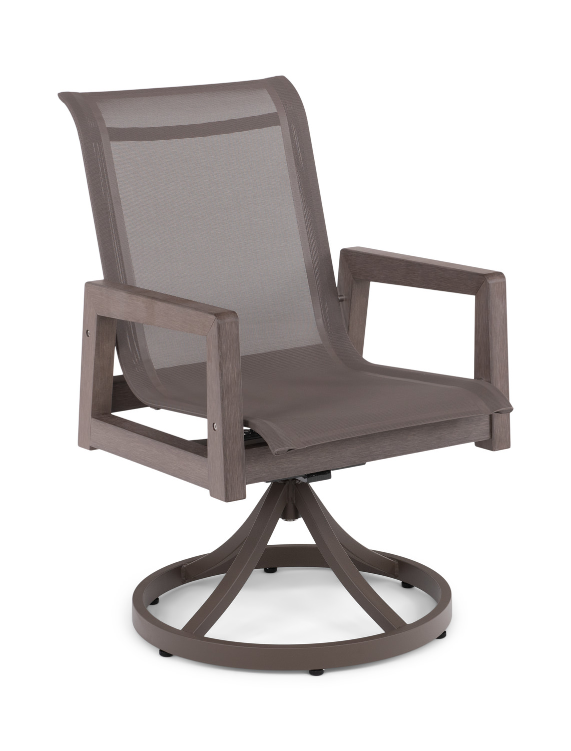 The Lakeshore Swivel Rocker Chair by HOM Furniture - is the perfect blend of style and functionality for your outdoor oasis! Crafted with a Textilene taupe sling fabric that is both durable and comfortable, this chair features a sophisticated Taupe frame that complements any outdoor decor with ease. The black walnut high-density resin polywood adds a touch of elegance and ensures long-lasting durability for years to come. Designed with urban style in mind, this patio chair is ideal for outdoor use and is sure to elevate your outdoor space.
