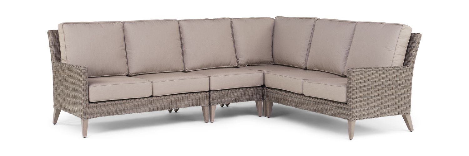 This stylish and modern Pinehurst 4pc sectional from HOM Furniture is the perfect addition to your outdoor space. Its aluminum frame and hand-brush taupe driftwood finish make it an eye-catching piece, while its high back seats in the new canvas taupe acrylic fabric and half-round taupe driftwood weave add an extra touch of luxury. The set includes a right loveseat, armless chair, corner, and left loveseat, making it easy to accommodate both small and large crowds. We highly recommend getting a protective cover to ensure that the sectional stays in excellent condition for years to come.