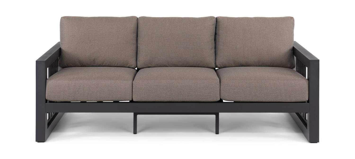 Introducing the Rowan Sofa from HOM Furniture, a perfect addition to your outdoor oasis! This stunning piece features a durable aluminum frame with a sleek carbon finish, complemented by plush sailcloth shadow cushions for ultimate comfort. With its transitional style and Thomas Cole Designs branding, the Rowan Sofa brings both style and quality to your patio. Please note that assembly is required. Available exclusively in WI, IA, ND, and SD, this brown beauty is designed for outdoor use, making it the ideal choice for lounging in the sun or stargazing on warm summer nights. Special order not available.