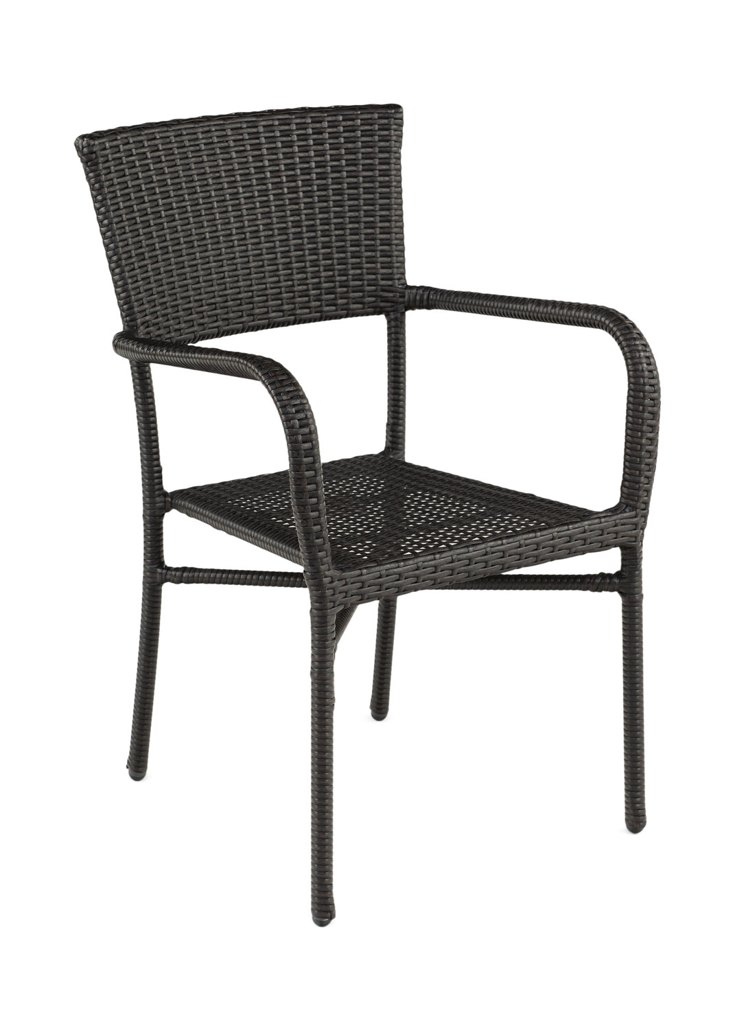 For today's style of transitional patio furniture, the Vista Wicker Dining Chair is built with an outdoor poly-resin weave on an aluminum frame. Features include X reinforced legs, stackable for storage and curved back for comfort. Customer assembly is required.
