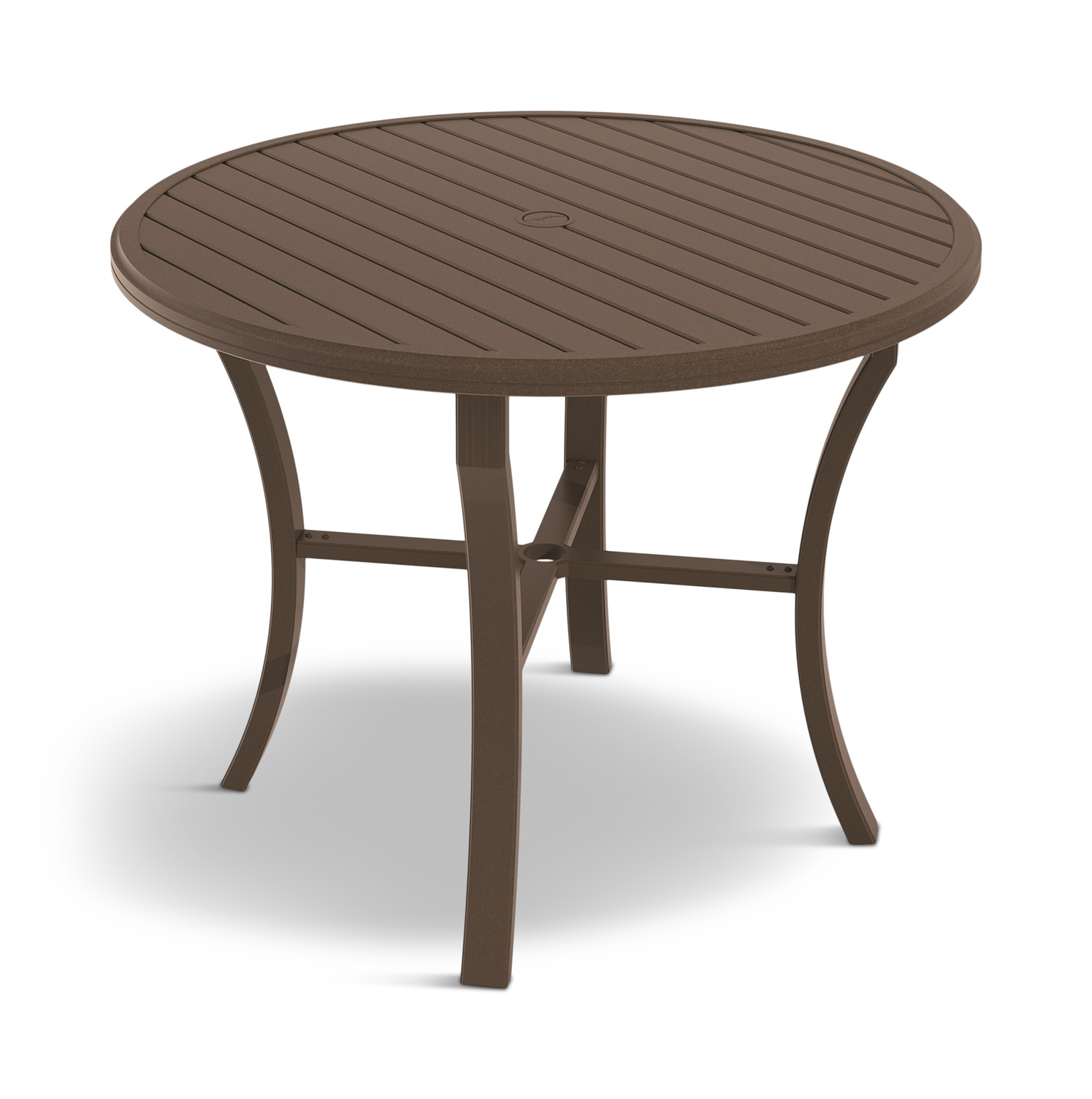 The Banchetto 48" Round Balcony Table from HOM Furniture is the perfect addition to your outdoor space! Crafted with a durable aluminum frame in a stunning, rich earth finish, this table is both stylish and sturdy. The round shape and balcony table height of 36" make it ideal for balconies or smaller outdoor areas. Designed by the renowned brand Tropitone, this patio table is a true masterpiece of transitional Style. Whether you're enjoying a morning cup of coffee or hosting a small gathering, this table is versatile and functional. The powder coat finish ensures long-lasting beauty, making it perfect for outdoor use.