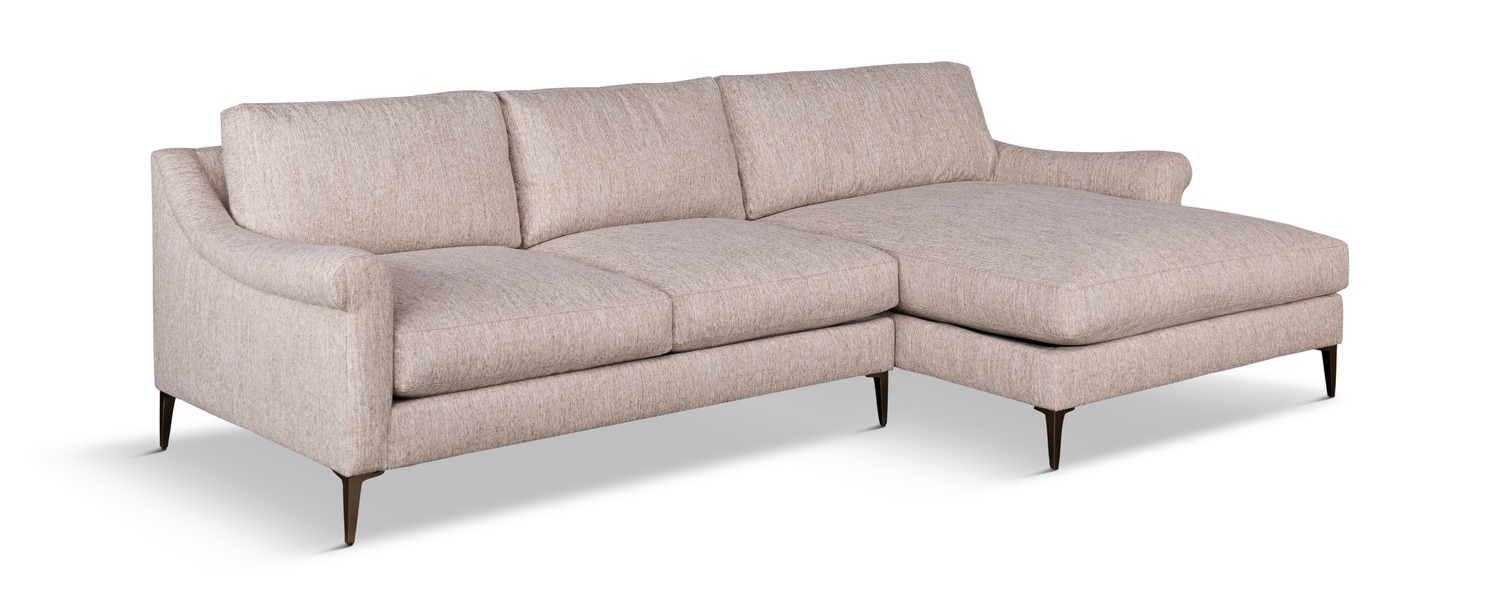 Introducing the Design Lab Hertz 2 Piece Sectional - Right Chaise, brought to you by HOM Furniture. This modern sectional features Pluma plush cushions for ultimate comfort, supported by a sturdy engineered hardwood frame with steel spring suspension. The transitional and casual style seamlessly blends into any living space, making it a versatile addition. Simple assembly is required, ensuring a hassle-free setup process. With its right-facing orientation and beige fabric material, this stationary sectional exudes elegance and sophistication. Custom orders are welcome, allowing you to tailor this piece to suit your unique preferences. Simple assembly required.