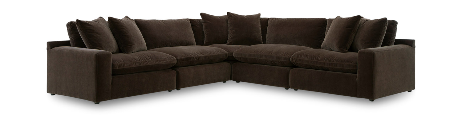 Introducing the Hagen 5 Piece Modular Sectional from HOM Furniture, where quality meets style effortlessly. Crafted with an engineered and hardwood frame, this sectional ensures durability and stability for years to come. The modular pieces are finished on all sides, allowing you the flexibility to arrange them as per your preference. Sink into the high-resiliency foam cushions that provide ultimate comfort and support. With simple assembly required, setting up your new sectional is a breeze. The attached back cushions and reversible pillow top feather blend cushions offer a luxurious seating experience. The set includes 6 decorative toss pillows that add a pop of style to your living space. Simple assembly required.