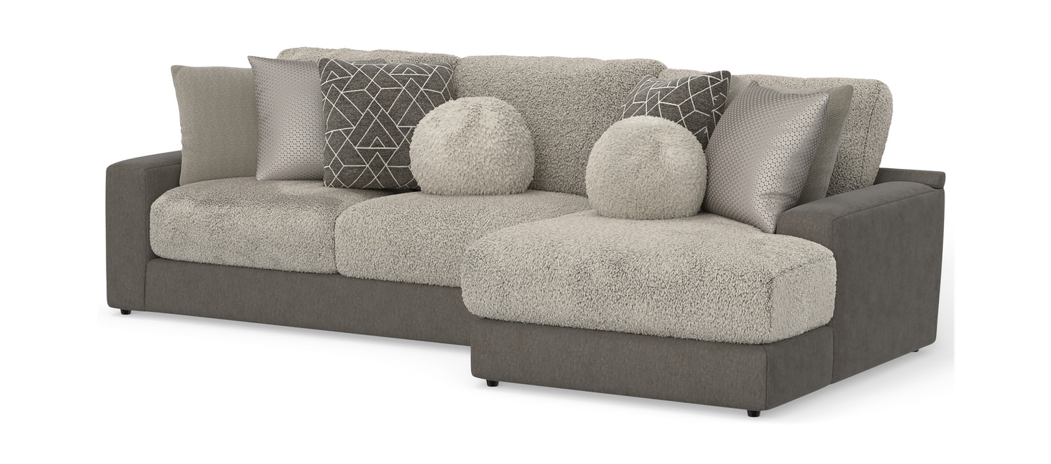 Introducing the Kayla 2 Piece Modular Sectional from HOM Furniture! Crafted with an engineered and hardwood frame, this piece is designed for both durability and style. This sectional features coil-in-cushion seating with a comfor-gel memory foam topper for ultimate comfort. The steel spring suspension ensures long-lasting support, while the modern and casual styles blend seamlessly into any living space. With a stationary design and right-facing orientation, this sectional is perfect for lounging or entertaining. The beautiful grey fabric adds a touch of elegance to your home decor.