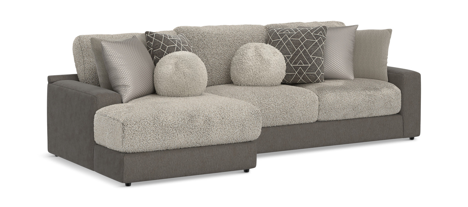 Introducing the Kayla 2 Piece Modular Sectional from HOM Furniture! Crafted with an engineered and hardwood frame, this piece is designed for both durability and style. This sectional features coil-in-cushion seating with a comfor-gel memory foam topper for ultimate comfort. The steel spring suspension ensures long-lasting support, while the modern and casual styles blend seamlessly into any living space. With a stationary design and right-facing orientation, this sectional is perfect for lounging or entertaining. The beautiful grey fabric adds a touch of elegance to your home decor.