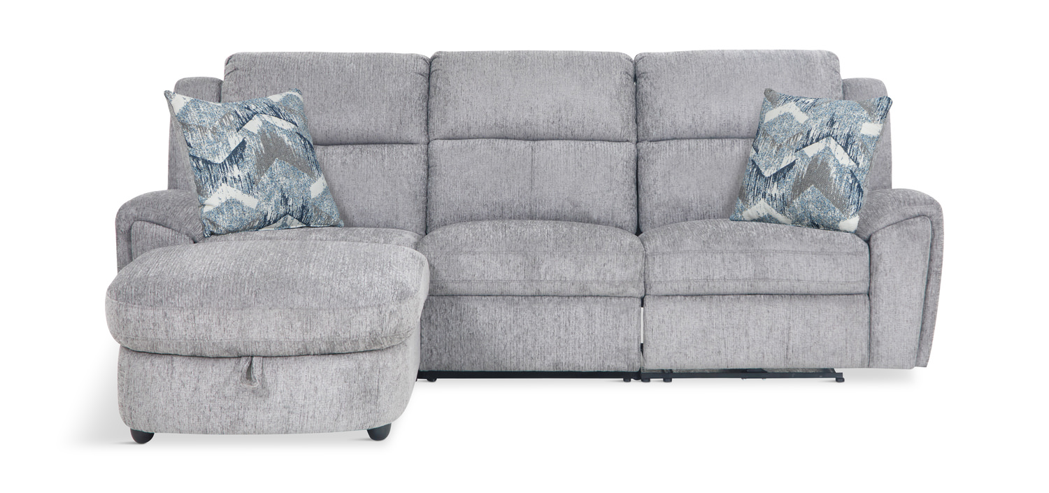 Are you looking to elevate your movie nights to a whole new level of awesome? With the Maya Sectional from HOM Furniture, get ready to kick back and relax in style! This bad boy comes packed with storage in the chaise (perfect for hiding those snacks), and a power reclining seat. Crafted with a durable frame and supportive suspension, this sectional is built to withstand the chaos of family movie nights (and maybe even a few pillow fights). So grab your popcorn, gather your crew, and get ready for cinematic comfort like never before!