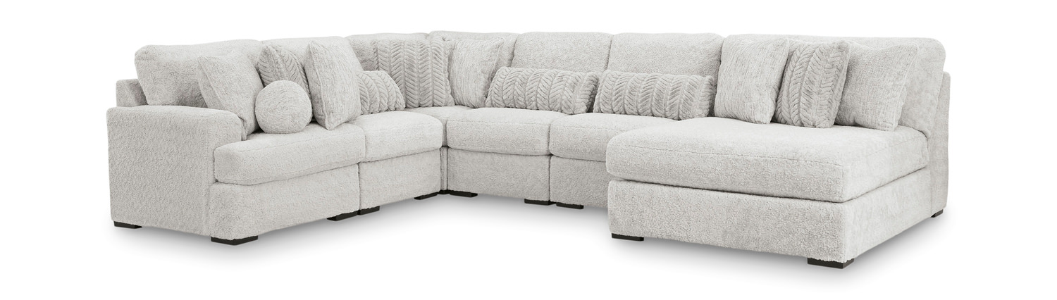 Introducing the Polar 6 Piece Sectional from HOM Furniture, where style meets comfort seamlessly! Crafted with a sturdy engineered hardwood frame, this sectional ensures durability and longevity. The high-resiliency foam provides plush comfort for hours of relaxation. This stationary sectional offers a modern and casual style, perfect for any contemporary living space. The chic grey color in soft fabric material adds a touch of elegance to your home decor.