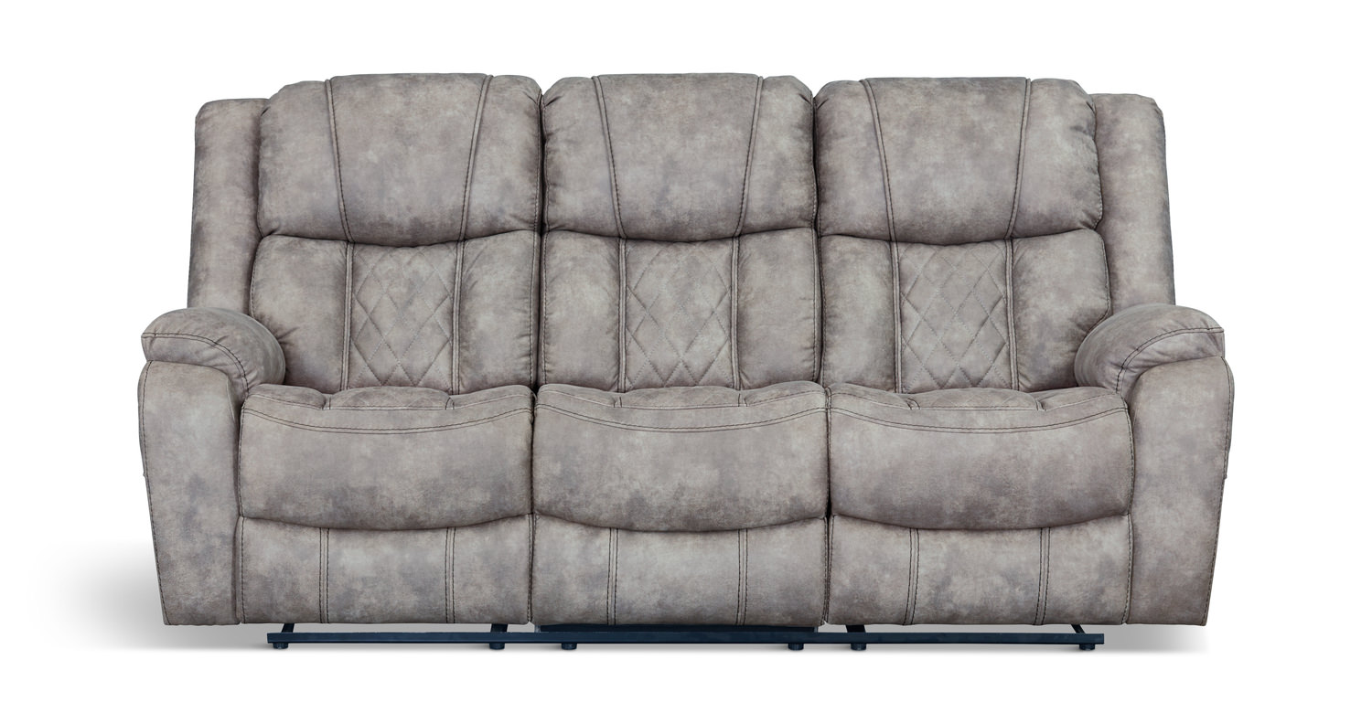 Introducing the Ashby Reclining Sofa from HOM Furniture, where comfort meets style seamlessly! Sink into plush comfort as you relax on this beautifully designed sofa featuring high-resiliency foam and a durable engineered hardwood frame. The heavy-duty mechanism ensures smooth reclining functionality, while the decorative quilting adds a touch of elegance to the casual style. The steel spring suspension provides added support and durability for years to come. Wrapped in a sleek grey fabric, this sofa is the perfect addition to any living space. Upgrade your relaxation experience with the Ashby Reclining Sofa today!