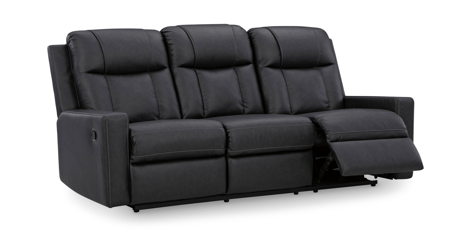 Unwind in style and comfort with the Halina Reclining Sofa from HOM Furniture. This sleek and modern sofa is designed with your relaxation in mind. Crafted with a durable engineered and hardwood frame and a heavy-duty reclining mechanism, this sofa is built to last. The high-resiliency cushion offers the perfect balance of support and softness for hours of cozy lounging. This transitional-style sofa will seamlessly blend into any living space. The easy-to-maintain fabric ensures that your sofa stays looking fresh and new for years to come.