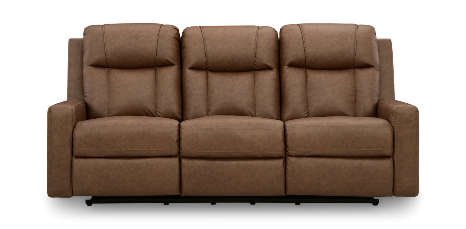 Unwind in style and comfort with the Halina Reclining Sofa from HOM Furniture. This sleek and modern sofa is designed with your relaxation in mind. Crafted with a durable engineered and hardwood frame and a heavy-duty reclining mechanism, this sofa is built to last. The high-resiliency cushion offers the perfect balance of support and softness for hours of cozy lounging. This transitional-style sofa will seamlessly blend into any living space. The easy-to-maintain fabric ensures that your sofa stays looking fresh and new for years to come.