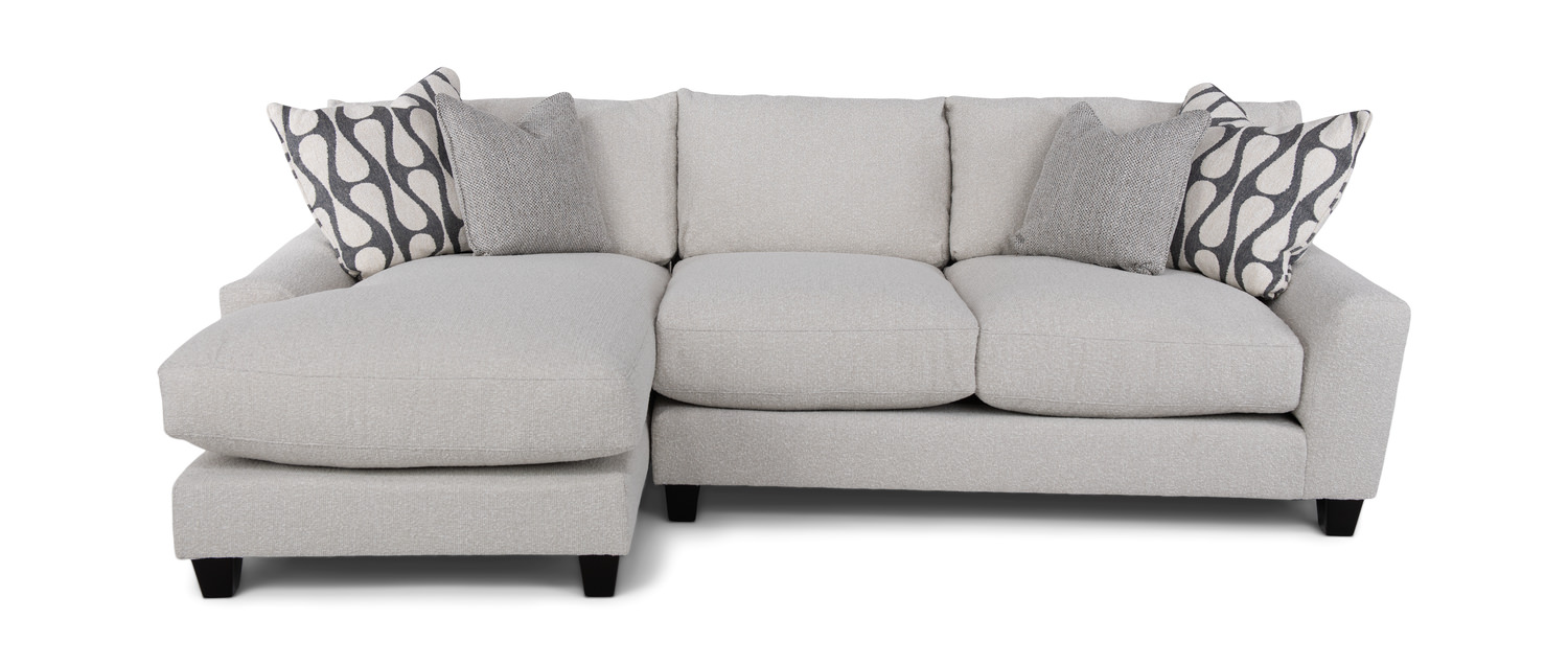 Introducing our luxurious Madison Sectional, designed for those who appreciate the finer things in life and seek the perfect balance between comfort and sophistication. Crafted with a reversible feather blend seat and supported by an engineered hardwood frame and steel spring suspension, the Madison Sectional ensures a plush and supportive seating experience that will make you feel like you’re living in the lap of luxury. Measuring over 100" in size, this two piece sectional is perfect for those who love to entertain or simply enjoy sprawling out for a cozy movie night.