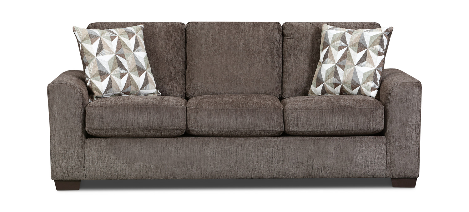 Introducing the Minny Sofa from HOM Furniture, a perfect blend of style and comfort for your living space! This stunning sofa comes with two accent pillows that add a touch of elegance to its casual style. Crafted with a durable engineered and hardwood frame and supported by steel spring suspension, this sofa ensures durability and stability for years. The high-resiliency foam cushions provide ultimate comfort, while the neutral fabric in a beautiful brown color effortlessly complements any décor. With a great scale, this couch is ideal for cozy nights in or entertaining guests.