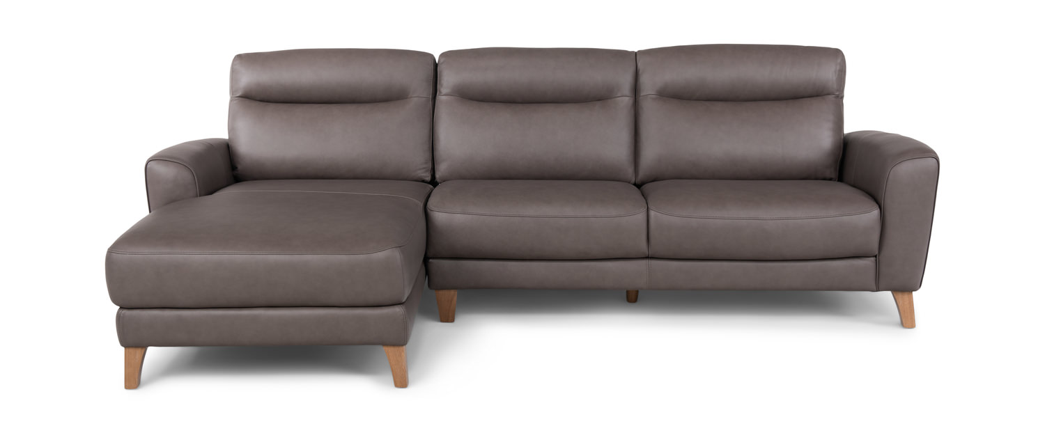 Introducing the Naomi Modular Sectional by Thomas Cole Designs, a true epitome of urban sophistication and modern luxury brought to you by HOM Furniture. Crafted with an engineered and hard wood frame, this sectional exudes durability and sturdiness, ensuring lasting quality for years to come. Sink into the high resiliency foam cushions upholstered in 100% genuine leather in a rich brown hue, offering a plush and supportive seating experience. The transitional design seamlessly blends contemporary and traditional elements, making it a versatile piece that complements any living space.