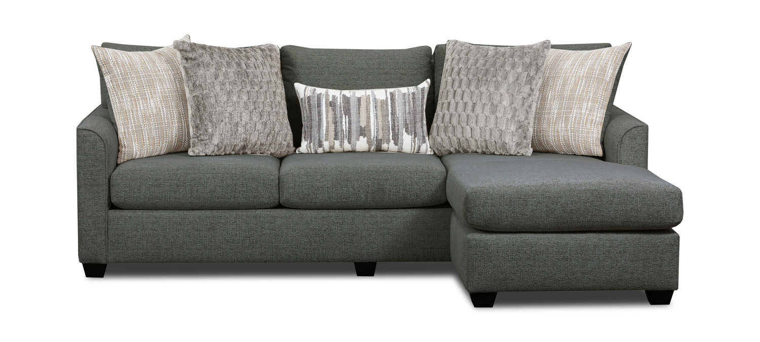 Discover the epitome of luxury and comfort with the Sadie Sofa with Chaise from HOM Furniture. Crafted with a sturdy engineered hardwood frame and supported by steel spring suspension, this transitional-style masterpiece exudes elegance and sophistication. Available in two exquisite colors, the Sadie Sofa features a reversible chaise for versatile lounging options. The drop-down table adds a touch of convenience and functionality, making it perfect for both relaxation and entertainment. Wrapped in high-quality fabric material in a sleek color, this couch exudes timeless charm and durability.