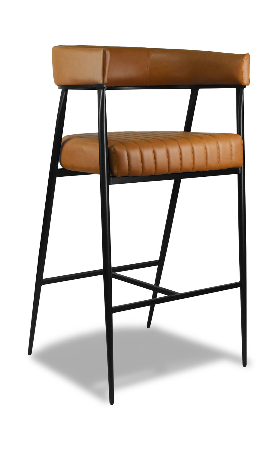 The unique style of the Amber stool with the wrap-around back is perfect for your island or bar area. The legs are powder-coated black metal with a cross brace and great taper. The seat has a classic channel quilted for comfort and design. The fully upholstered back provides support.
