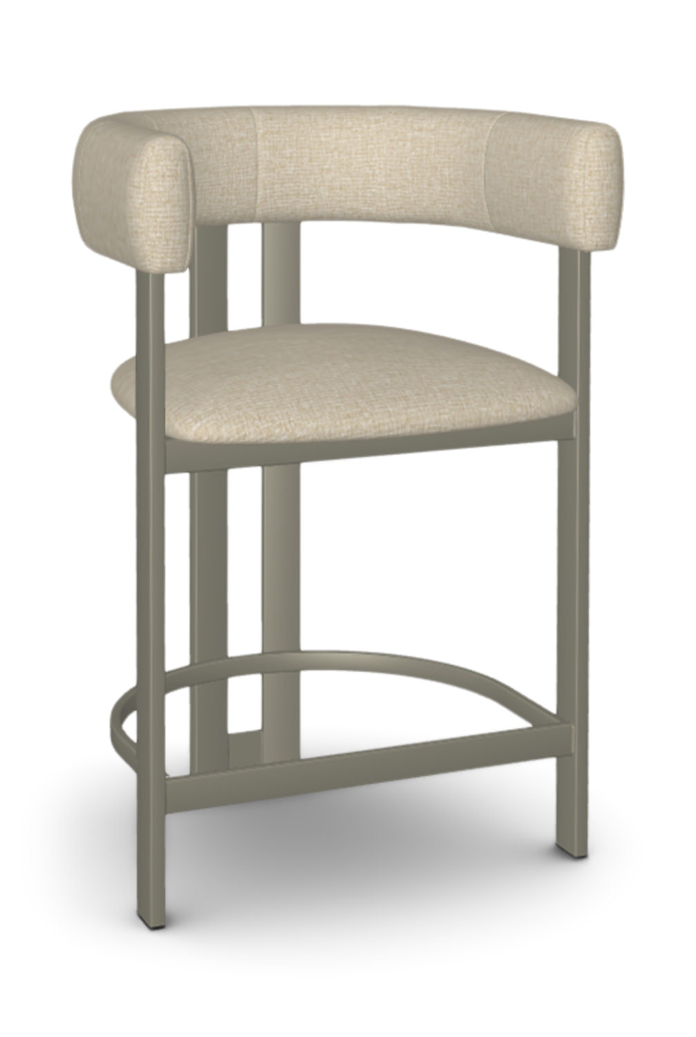 The Clarissa stool is a standout addition to any modern kitchen. Its sleek design radiates sophisticated charm that aligns perfectly with contemporary interiors. The beautifully curved backrest flows seamlessly into armrests, providing support during long conversations. And when you're done, simply tuck it under the counter to save precious space. Custom order available.